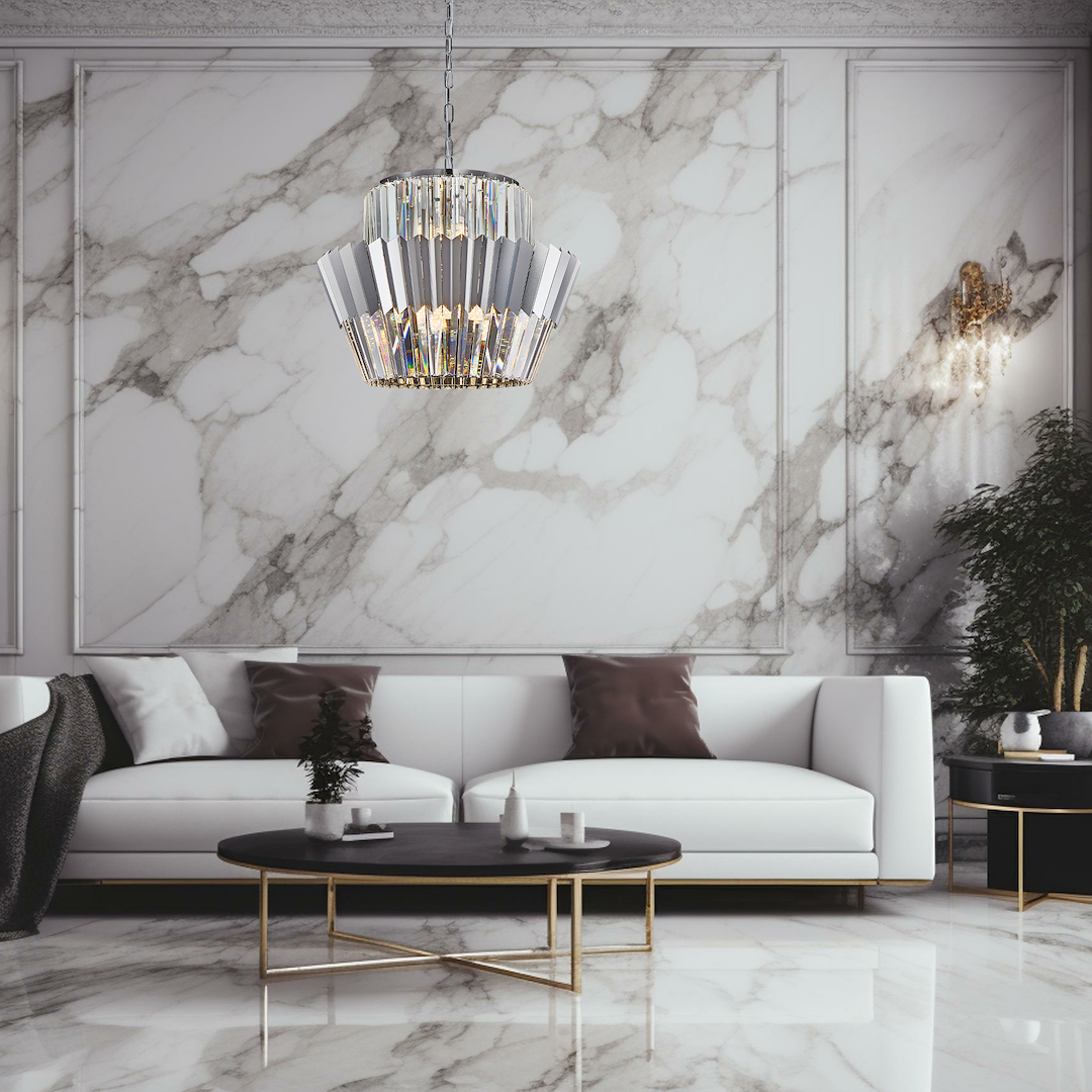 Kolekcja Donna to odbicie wyrafinowanego stylu i doskonałej funkcjonalności. Przedstawiamy kryształowe żyrandole, dostępne w dwóch ekskluzywnych wykończeniach: satynowym złocie lub chromie, wykonane z najwyższej jakości stali nierdzewnej. Te wyjątkowe żyrandole łączą w sobie piękno kryształów z solidną strukturą metalową. Niezwykłe detale i unikatowy design czynią żyrandole z kolekcji Donna nie tylko źródłem światła, ale także niezapomnianym elementem dekoracyjnym. Idealnie wkomponowują się w wnętrza w stylu glamour, nadając im niepowtarzalnego uroku i luksusowego wykończenia. Świetnie komponują się w salonach, tworząc atmosferę pełną blasku i wyrafinowanej elegancji. Poznaj wyjątkowy styl kolekcji Donna i odkryj, jak ten żyrandol może stać się niezastąpionym dodatkiem do Twojego wnętrza, podkreślając jego wyjątkowy charakter.