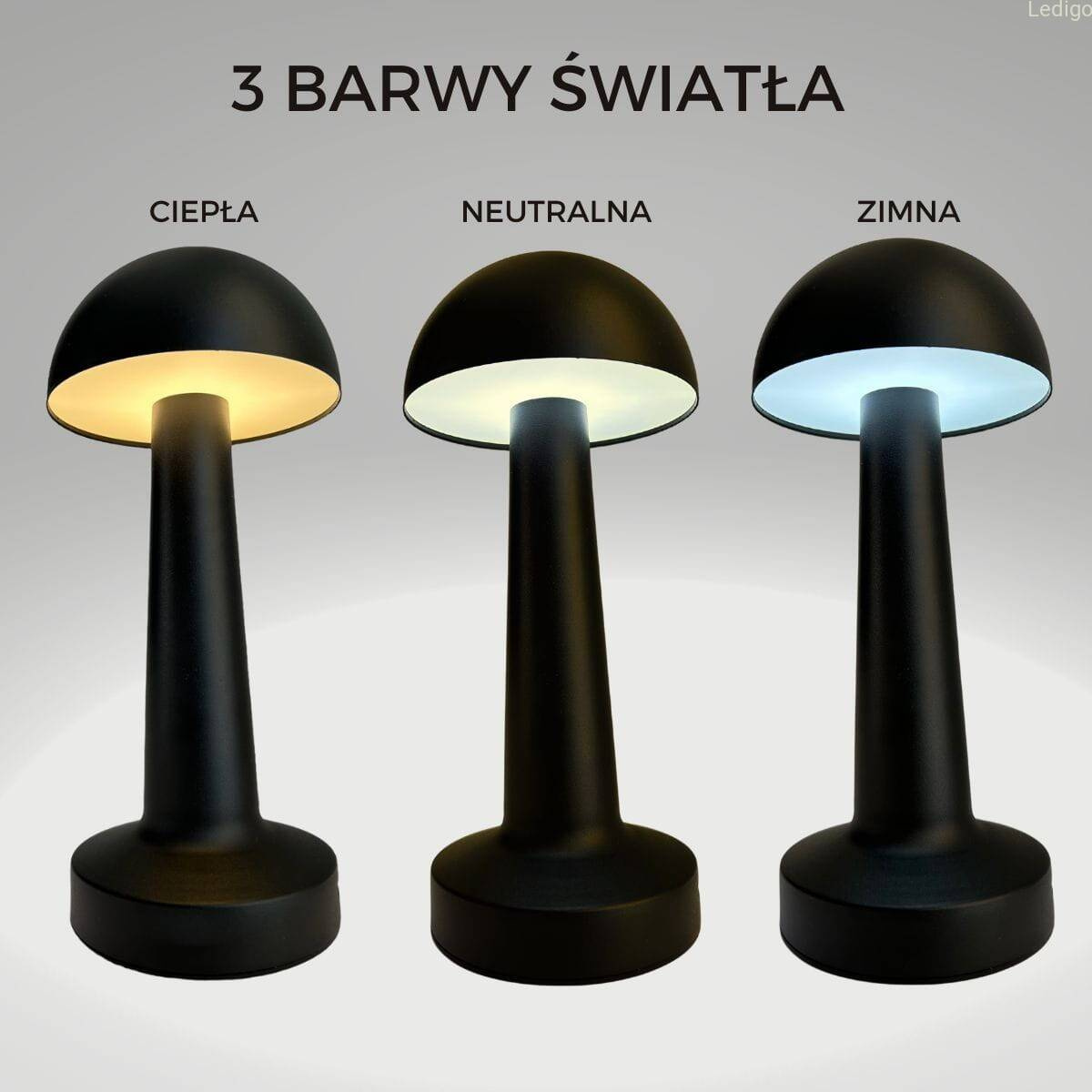 ,Modna, elegancka lampka LED o dotykowym panelu sterowania. Jej atutem jest możliwość zmiany barwy i natężenia światła. Lampka świeci w trzech barwach: ciepłej, zimnej i neutralnej. Aby zmienić barwę wystarczy lekko uderzyć w górną część lampki. Dłuższe przytrzymanie ręki na czubku lampki spowoduje że rozświetli się z pełną mocą a następnie przejdzie w tryb ściemniania. Lampka nocna LED znakomicie sprawdzi się nie tylko jako punkt świetlny tworzący klimat ale także jako ozdoba wnętrza. Stanowi piękny dodatek w sypialni i w salonie. Ułatwi zasypianie dziecku w jego pokoju. Taka lampka stołowa zapewni także nastrojowe oświetlenie na imprezy domowe i w lokalu.