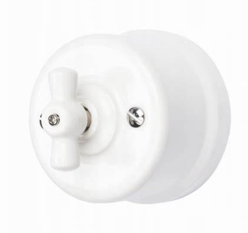 Włącznik ceramiczny obrotowy krzyżowy biały natynkowy