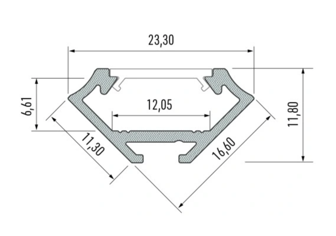 ,Profil do led jest profilem narożnym o kącie kierowania światła równym 45 stopni. Najczęściej stosowany w narożnikach mebli lub ścian. Dzięki ściętemu tyłowi, może zamaskować nierówności narożników.