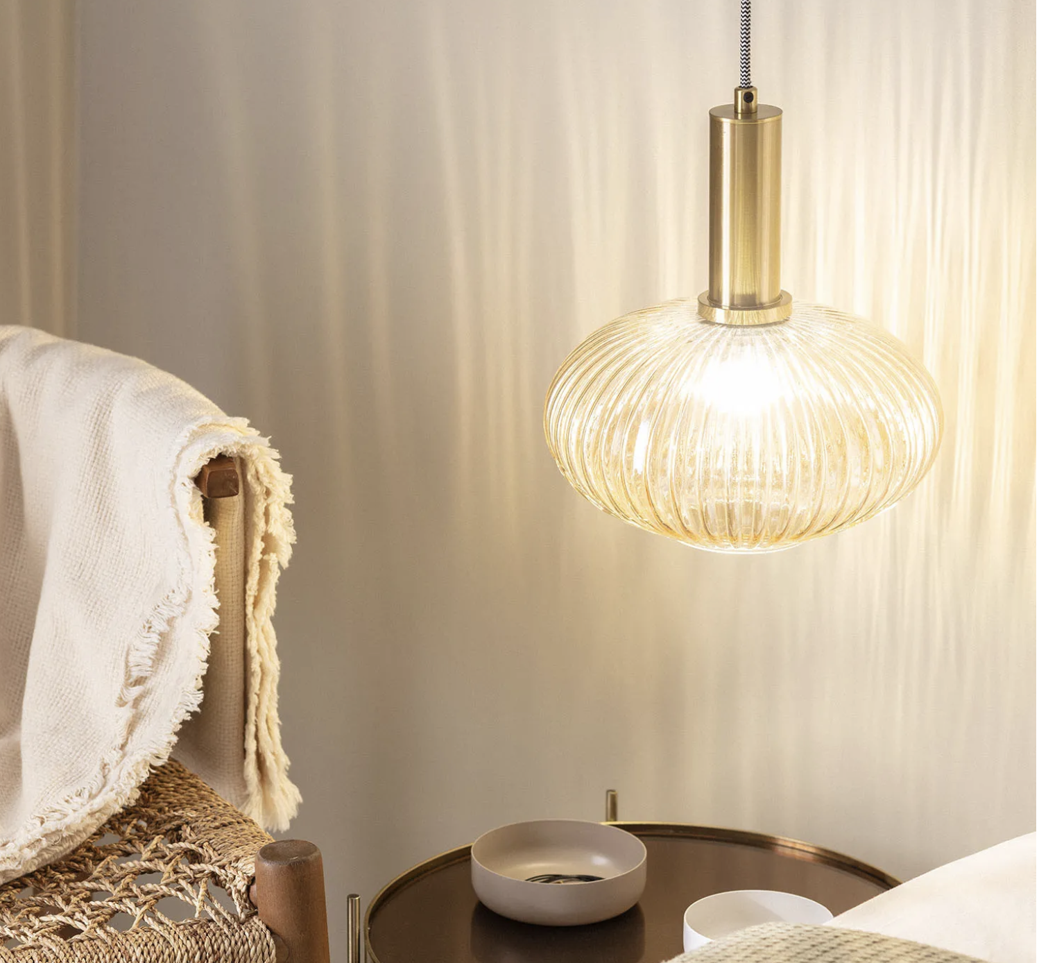 Szklana lampa wisząca Basile bursztynowa 1 xE27 złota
