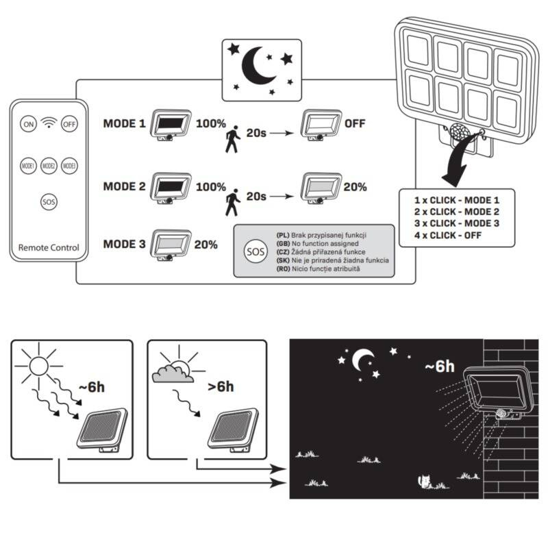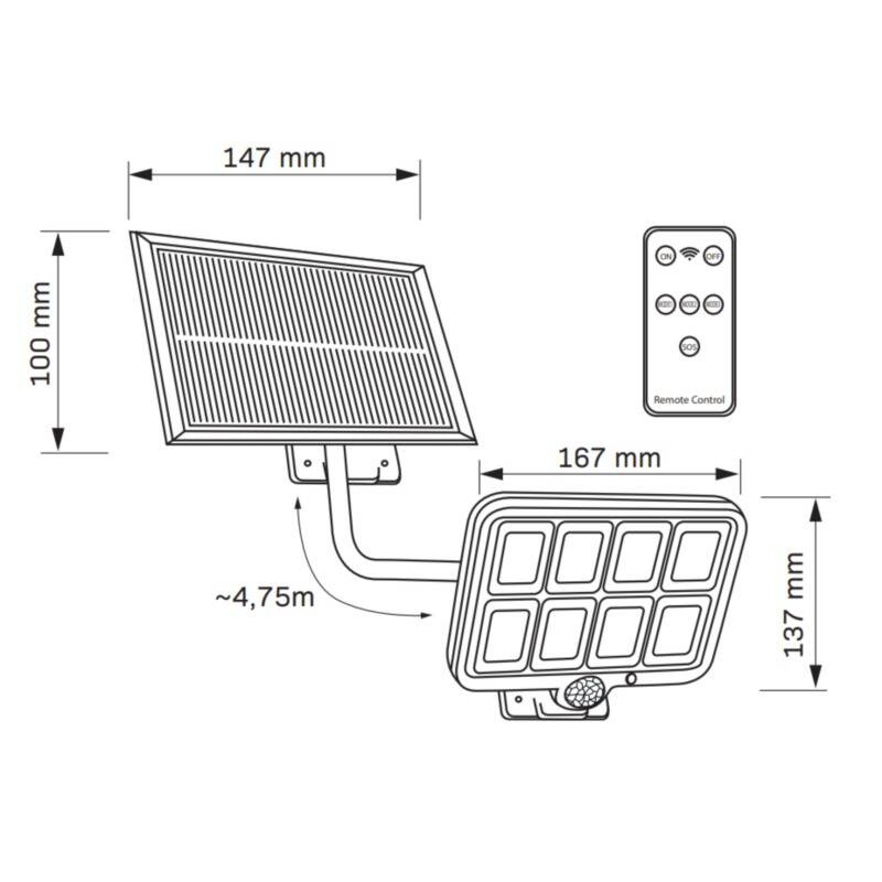 Naświetlacz solarny LED INTEGRA z czujnikiem PIR z pilotem