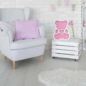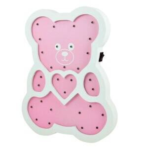 Lampa dekoracyjna drewniana Led MIŚ Różowy na baterie