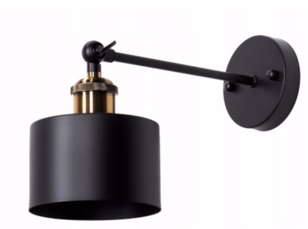 Metalowy kinkiet regulowany E27 czarny złoty Retro