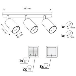 Lampa ścienno-sufitowa MARIBEL 3 GU10 biała + złote pierścienie
