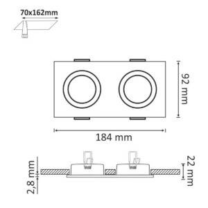 Oprawa podtynkowa SOUTH OPAL-IQB92B2 2xGU10 alum 2in1 czarna szczotkowana prostokąt
