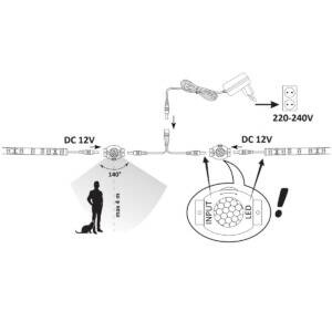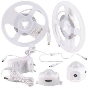 Zestaw taśm LED 12V 2x 2m z zasilaczem i czujnikiem PIR 4000K IP20