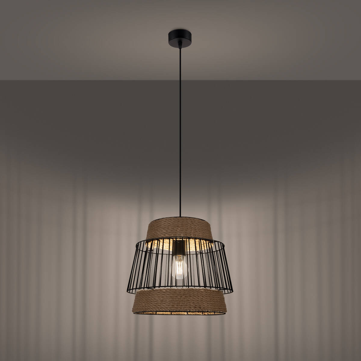 Lampa BRILO zachwyca swoim designem. Wyginane stalowe pręty w kolorze czarnym są subtelnie przełamane drewnianymi elementami w naturalnych odcieniach. To nietypowe połączenie wpisuje się w ostatnie trendy i sprawia, że oświetlenie jest po prostu urocze.