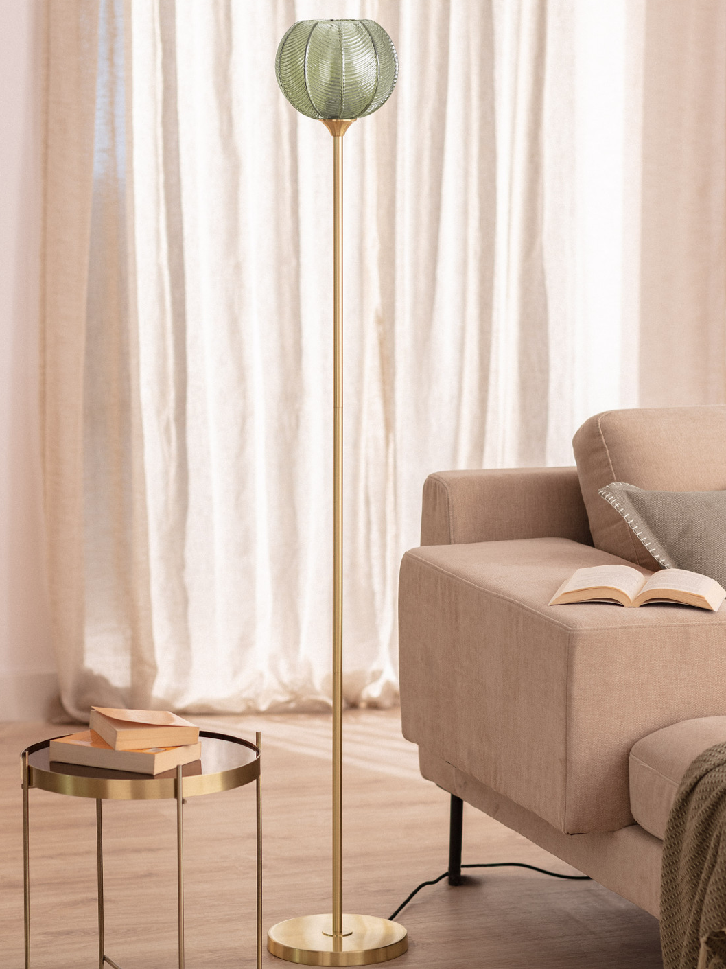 Lampa Podłogowa z Metalu i Szkła Klimt zielona złota