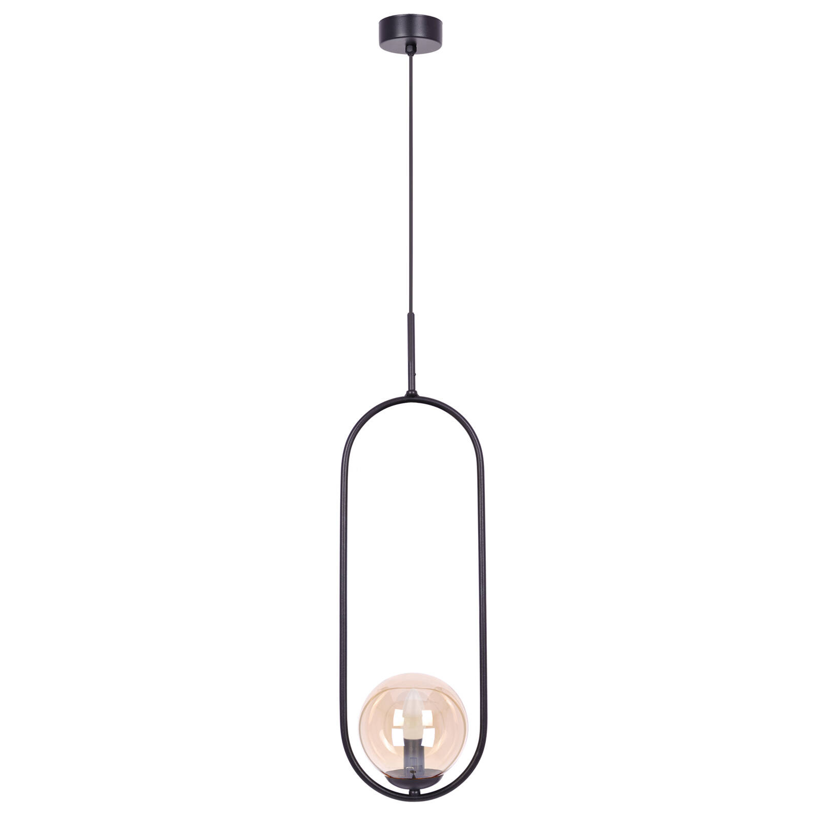 Lampa wisząca K-5120 to połączenie funkcjonalności, elegancji i doskonałej jakości. Ta niezwykła lampa w kształcie elipsy to idealne rozwiązanie, które wniesie nowoczesny i designerski akcent do Twojego wnętrza. Głównym elementem lampy jest szklany, bursztynowy klosz o okrągłym kształcie. Ten efektowny detal nadaje lampie niezwykłego uroku i subtelnie rozprasza światło, tworząc przyjemną atmosferę w pomieszczeniu. Klosz jest wykonany z wysokiej jakości szkła, co gwarantuje trwałość i estetykę przez wiele lat. Geometryczne kształty w ostatnim czasie zyskały niesłychaną popularność. Okręgi, elipsy oraz kule to elementy, których klienci szukają w oświetleniu coraz częściej. Rodziny lamp PARVA, DAVOS i VENTA to precyzyjnie wykonane, symetryczne produkty.