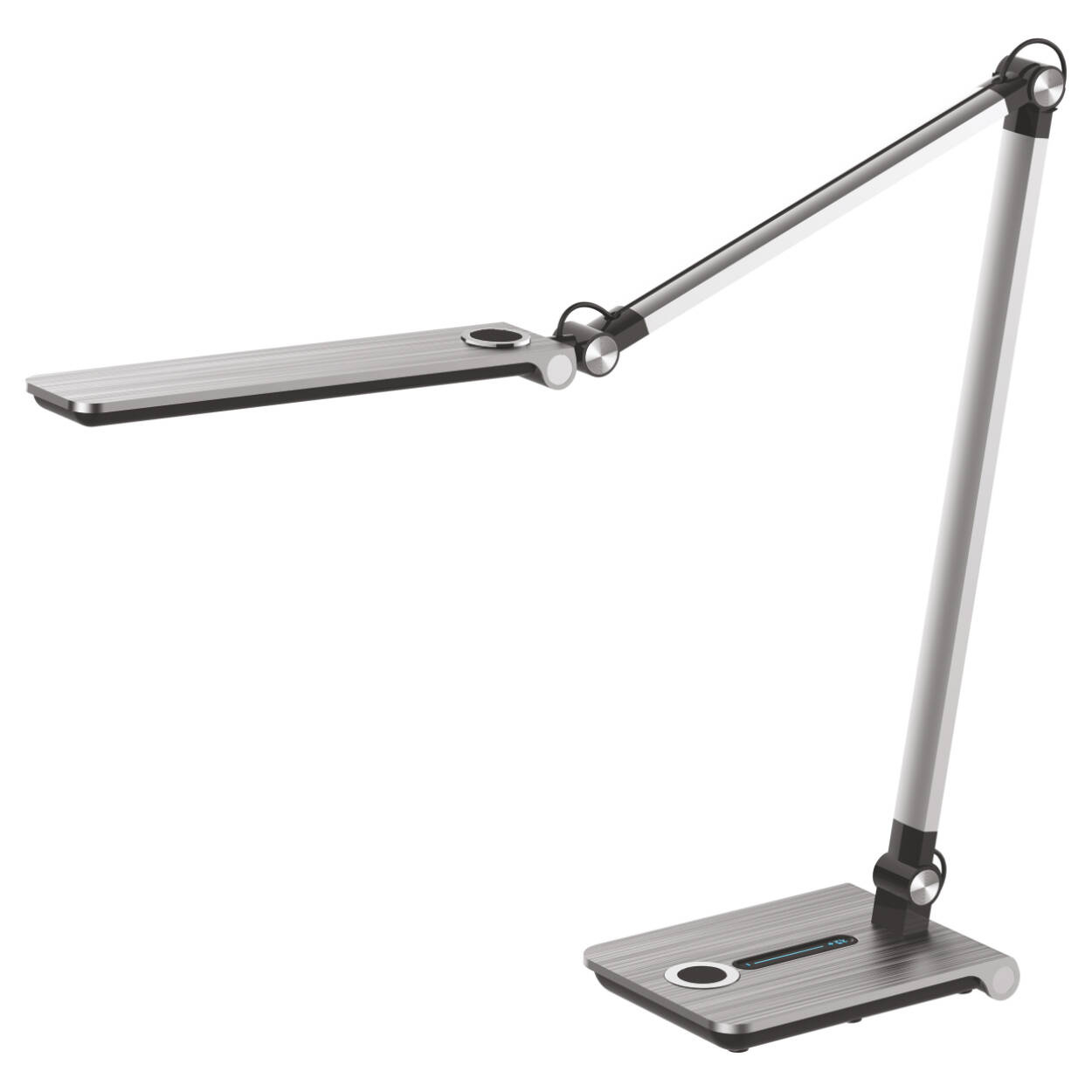 Dodatkową funkcjonalnością tej nietuzinkowej lampki jest możliwość regulacji barwy oraz stopnia natężenia światła, za pomocą dotykowego panelu sterowania umieszczonego na jej podstawie. Moc modułu LED to 10W, a zakres regulacji temperatury barwowej to 3000-6500K – w zależności od charakteru wykonywanej czynności samodzielnie wybierasz czy potrzebujesz barwy ciepłej, zimnej czy też neutralnej. Niezależnie od tego czy szukasz solidnego oświetlenia do pracy biurowej, szkoły, domowego gabinetu, czy pokoju dziecięcego jedno jest pewne, srebrno-czarna lampka Rico spełni wszystkie Twoje wymagania.