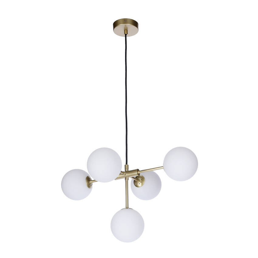 Lampa wisząca mosiądz mleczny klosz kulka 5x28W Mati Candellux 35-73778