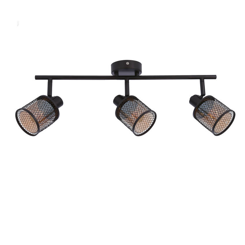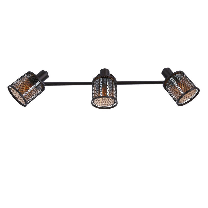,Listwa na trzy źródła światła wykonana z metalu wraz z kloszem szklanym w ażurowym koszyczku.