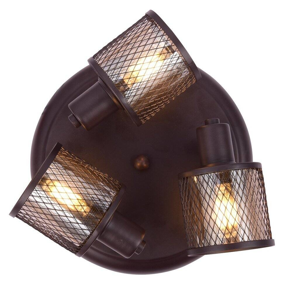 ,Plafon na trzy źródła światła wykonany z metalu wraz z kloszem szklanym w ażurowym koszyczku.