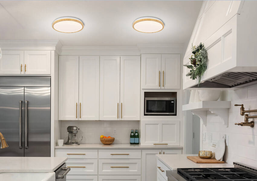 ,Lampa sufitowa w białym kolorze w połączeniu z elementami drewna wykonana z wytrzymałego akrylu.