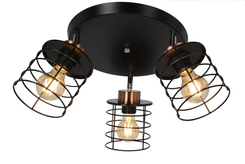 Podstawy lamp wykonane są z czarnej stali, co zapewnia solidną konstrukcję. Klosze to metalowe koszyczki w kolorze czarno-miedzianym. To połączenie wzbudza zachwyt swoim designem.