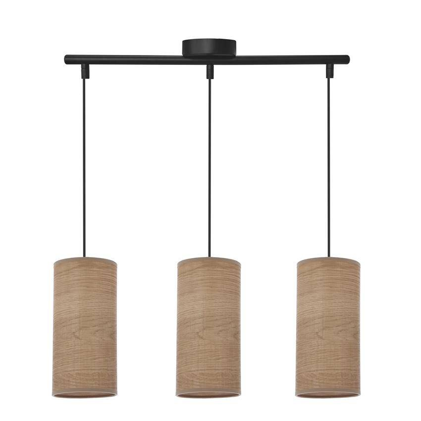 Ballo lampa wisząca czarny 3x60 e27 abażur orzechowy
