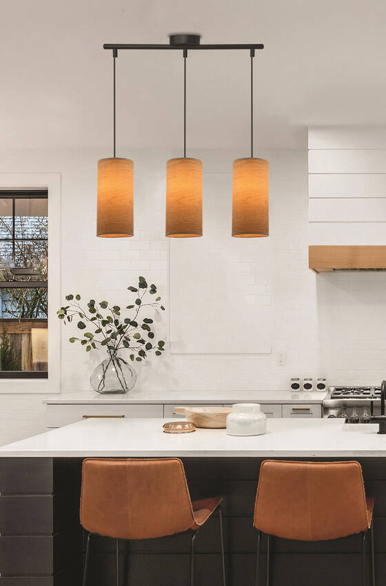,Seria BALLO to stylowe lampy wiszące, które łączą w sobie nowoczesny i naturalny design. Podstawa została wykonana w kolorze czarnym. Zawiesie ma możliwość regulacji długości. Abażur lampy w kształcie walca wyróżnia się solidnym wykonaniem z materiału upodobniającego korekt.