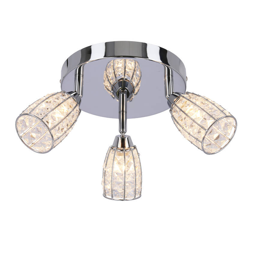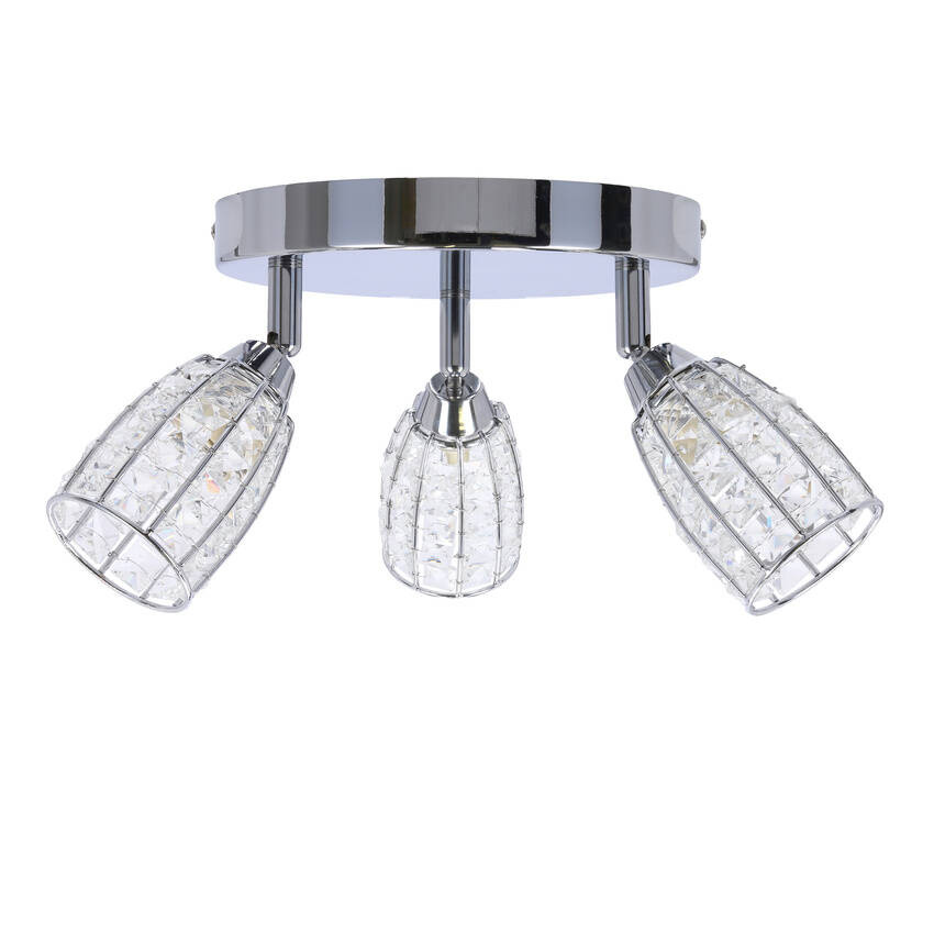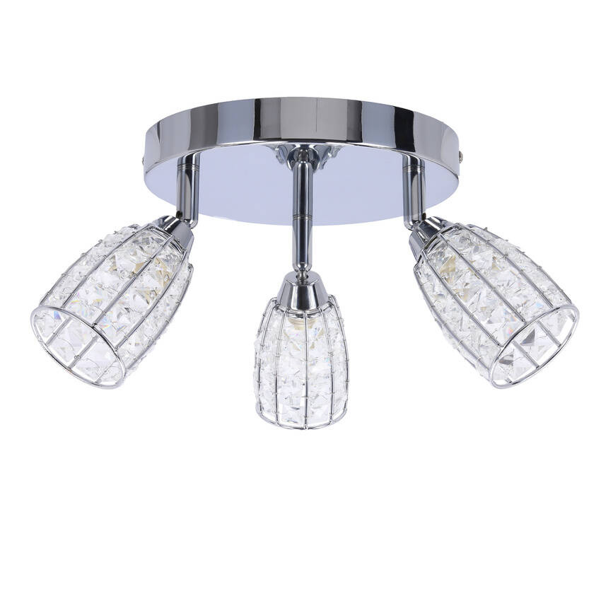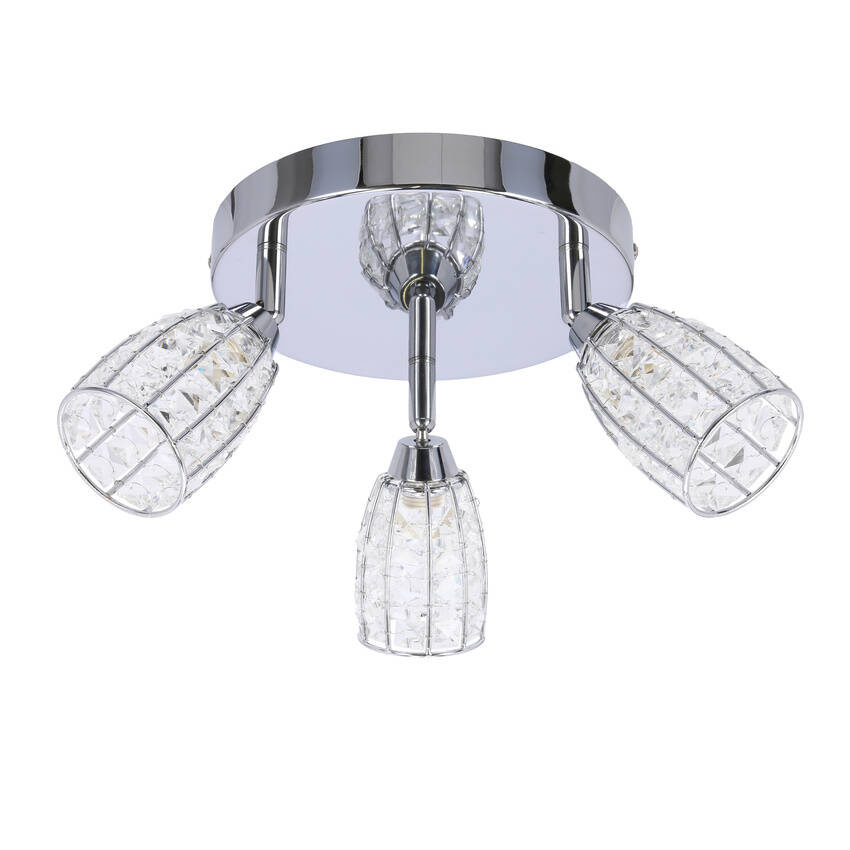 Lampa sufitowa jest wyposażona w trzy źródła światła o mocy 15W każde i standardowym gwincie G9. Klosze bezbarwne, wykonane z przejrzystego materiału, umożliwiają równomierne rozpraszanie światła, tworząc przyjemne oświetlenie w całym pomieszczeniu.