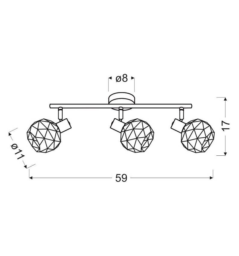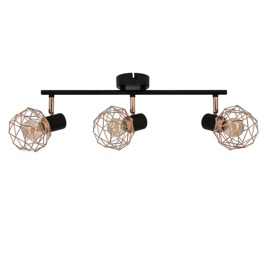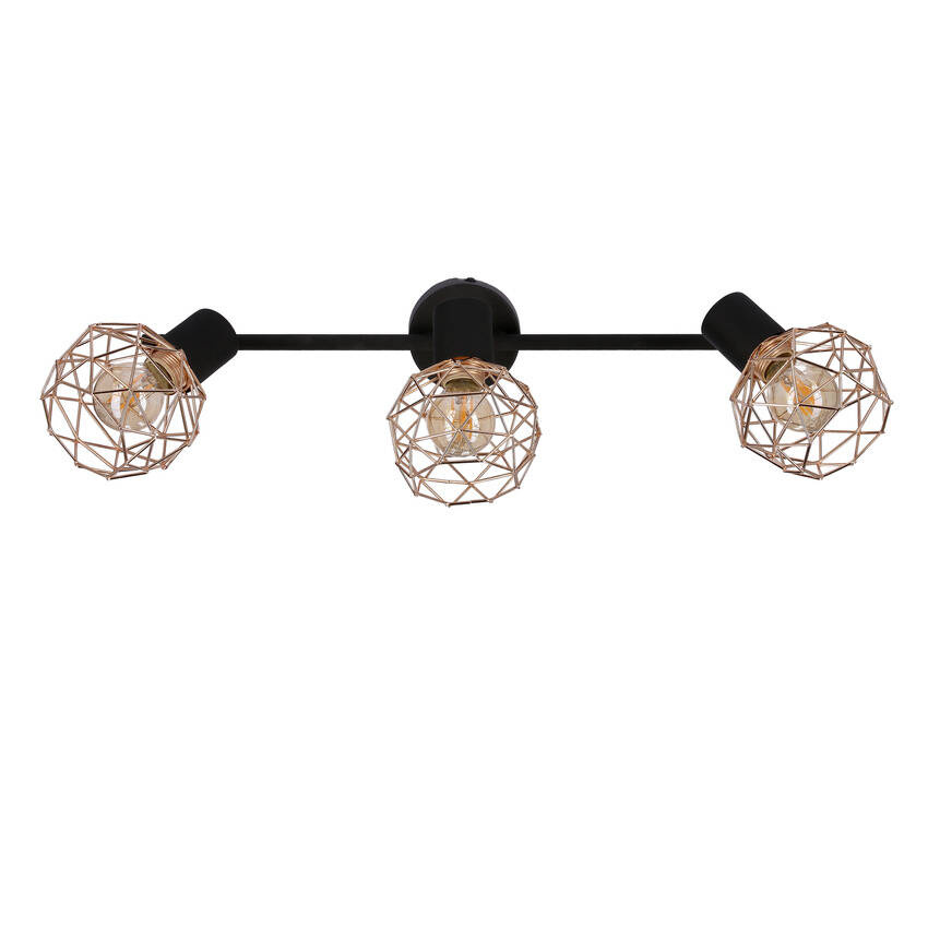 Lampa ścienna sufitowa listwa potrójna czarna klosz miedziany Acrobat 93-22219
