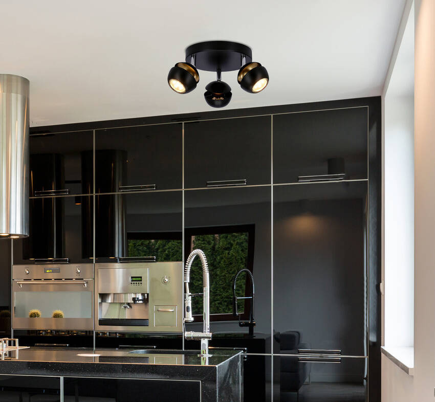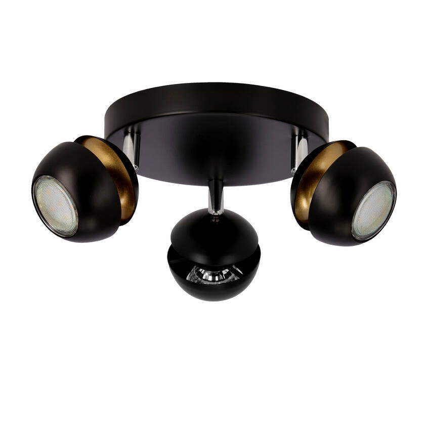 ,Arystokrata wśród spotów - głęboka matowa czerń wytwornie rozjaśniona jednocześnie złotem i chromem; pozornie typowy klosz w kształcie otwartej kuli - tu z dekoracyjnym "pęknięciem"; efektownie rozprasza strumień światła; łatwy w utrzymaniu czystości; ruchome połączenie główek z podstawą umożliwia regulację kąta padania światła; doskonale prezentuje się pojedynczo oraz jako oświetlenie grupowe, tworząc jedyne w swoim rodzaju efekty podkreślające indywidualny charakter pomieszczeń