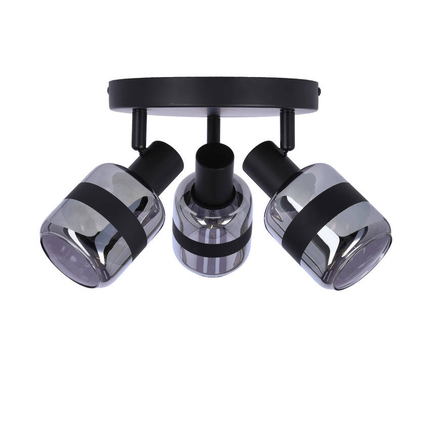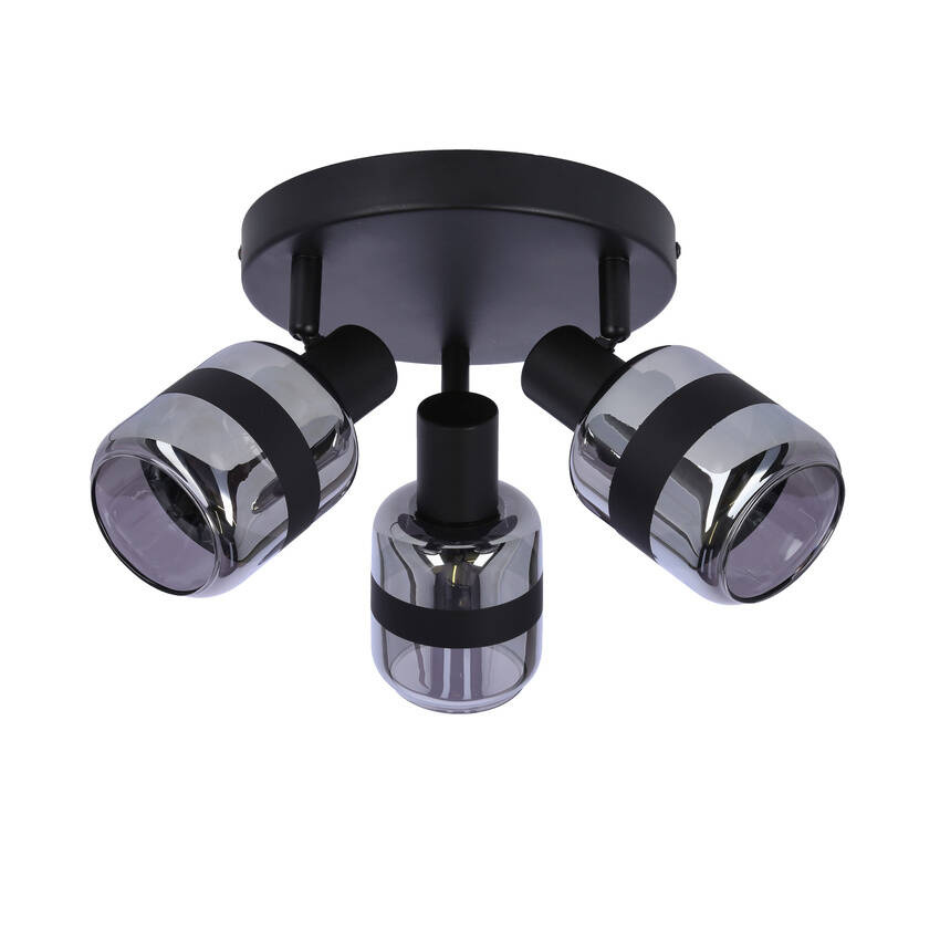 Yuki Lampa Plafon Czarny Matowy 3X15W E14 Klosz Dymiony
