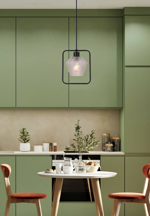 Nie zawiera głównego źródła światła Moc max (W): 40 Materiał: zawiesie stalowe, klosz szklany