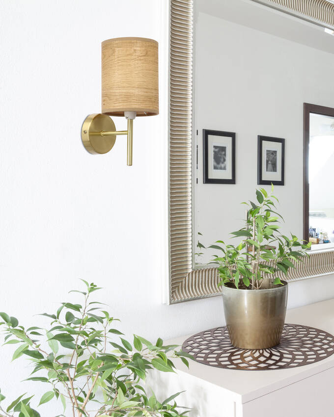 Yan Lampa Kinkiet Patynowy 1X40W E14 Abażur Orzechowy