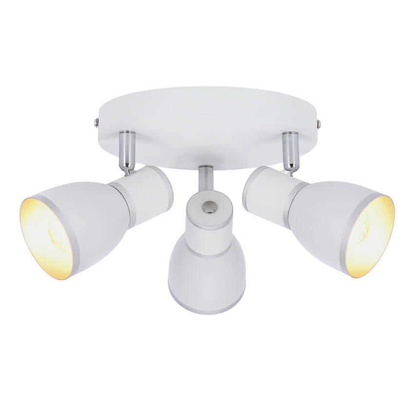,Ponadczasowa biel subtelnie dekorowana paskami w kolorze satynowego srebra. Pełne metalowe klosze i możliwość regulacji ich kąta nachylenia zapewniają swobodę ukierunkowania strumienia światła. Łatwe w utrzymaniu czystości. Idealne nawet do niskich pomieszczeń.