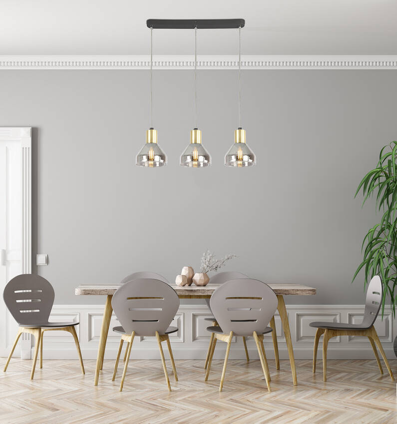 Lampa wisząca złota szkło 3xE14 70cm GREGORY