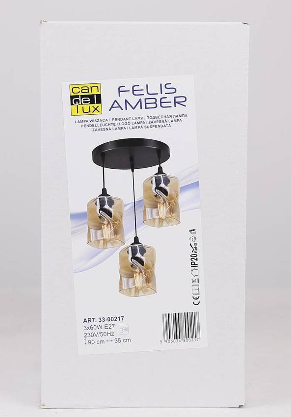 Lampa wisząca czarna/bursztynowa talerz 3xE27 Felis 33-00217