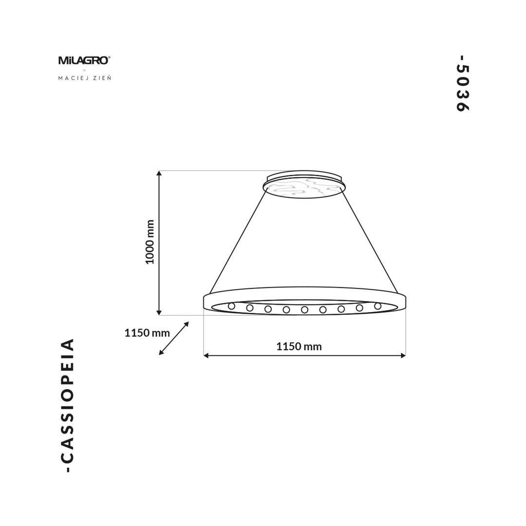 Duża lampa wisząca o oryginalnej formie inspirowanej gwiazdozbiorem Cassiopeia oraz światem teatru.