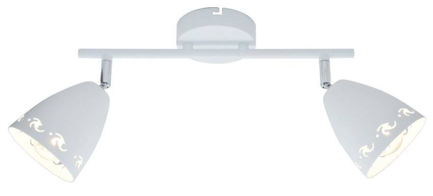 ,Matowa biel doda lekkości i sterylności w każdym wnętrzu. Metalowe klosze efektywnie kierunkują strumień światła. Dekoracyjne wycięcia na obrzeżach klosza dodają efektów świetlnych. Możliwość regulacji kąta nachylenia klosza w pionie i poziomie.