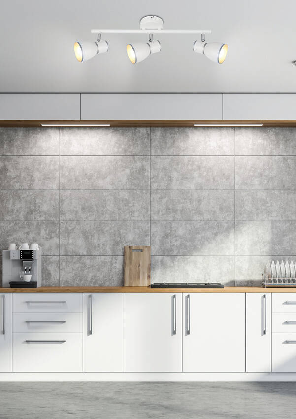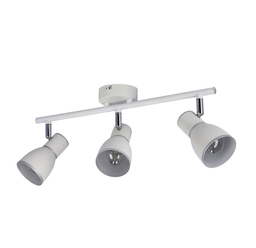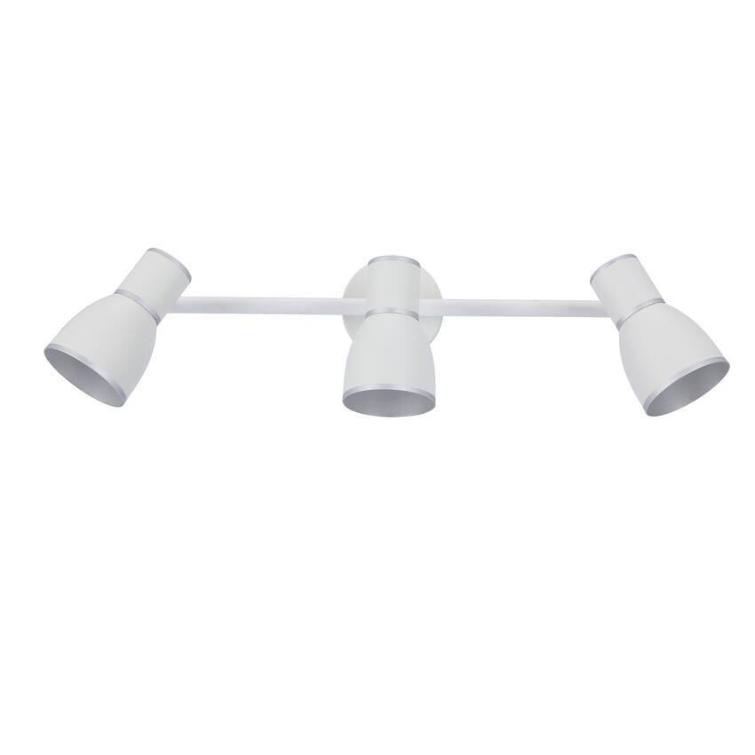 ,Ponadczasowa biel subtelnie dekorowana paskami w kolorze satynowego srebra. Pełne metalowe klosze i możliwość regulacji ich kąta nachylenia zapewniają swobodę ukierunkowania strumienia światła. Łatwe w utrzymaniu czystości. Idealne nawet do niskich pomieszczeń.