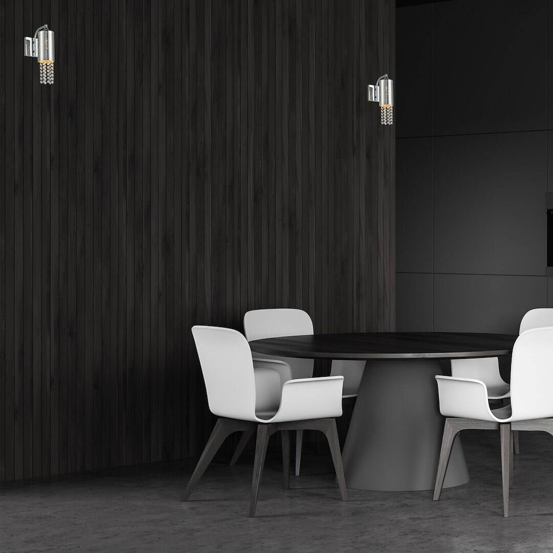 Klosze wykonane są z elementów metalowych, szklanych oraz kryształów. W ofercie lamp znaleźć można kinkiet i wiszące lampy sufitowe jednym oraz z trzema punktami światła.