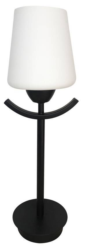 ,Nieprzemijająco doskonała gra kolorów - czerni z bielą. Metalowe ramionka o oryginalnym kształcie - proste, dostojne i eleganckie. Klasyczny biały klosz skierowany ku górze idealnie komponuje się z surowym designem lampki. Idealnie sprawdzi się w nowoczesnych wnętrzach salonu jak również klimatycznych przedpokojach.