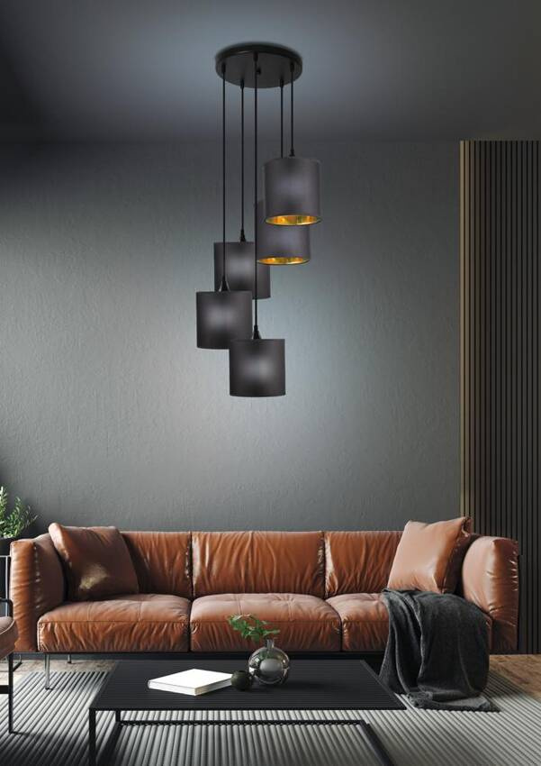 ,Lampa wisząca talerz czarny 5xE14 Long 35-73976