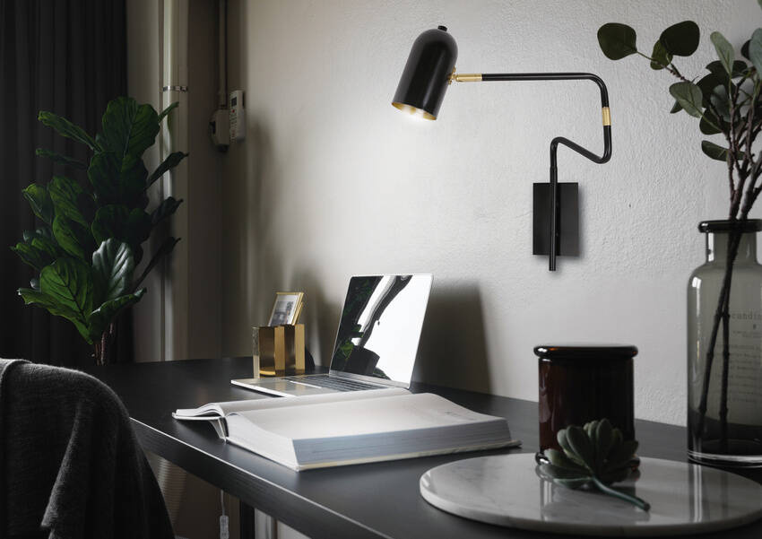 ,Bardzo nowoczesny, a przede wszystkim funkcjonalny kinkiet. Obrotowe ramię i regulowany klosz zapewnią optymalne ustawienie kierunku światła. Możliwość montażu na ścianie jako lampa ścienna. Do lampy należy dokupić żarówkę GU10 o maksymalnej mocy 15W. Kinkiet nie posiada włącznika.