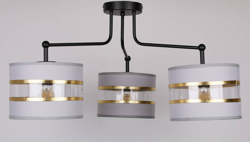 Lampa sufitowa czarny 3xE27 abażur biały + złoty Andy 33-00514