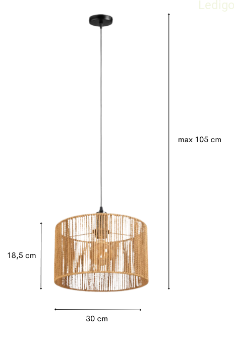 Lampa wisząca strunowa naturalna pleciona WALEC boho 30cm