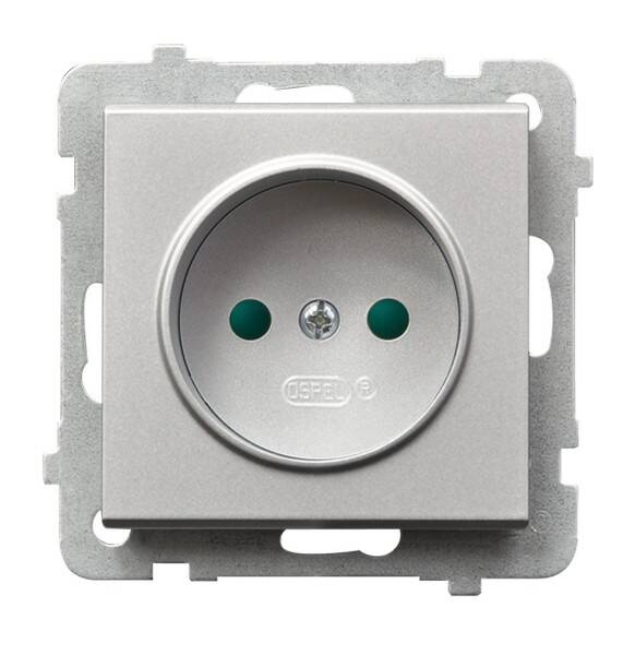 Gniazdo pojedyncze z przesłonami torów prądowych Ospel Sonata Srebrny Mat