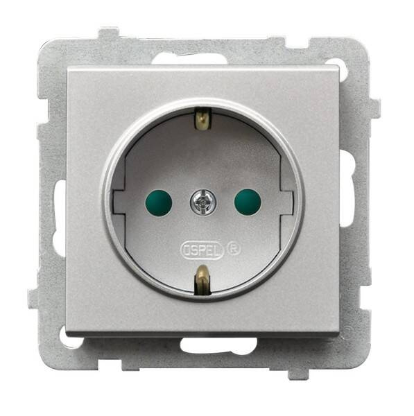 Gniazdo pojedyncze z uziemieniem schuko z przesłonami torów prądowych Ospel Sonata Srebrny Mat