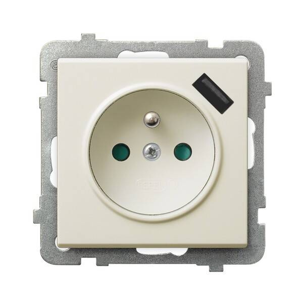 Gniazdo pojedyncze z uziemieniem z przesłonami torów prądowych, z ładowarką USB Ospel Sonata Ecru