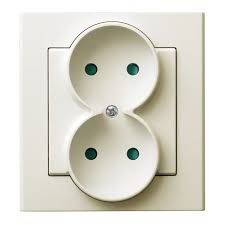Gniazdo podwójne z przesłonami torów prądowych, kompletne z ramką Ospel Sonata Ecru