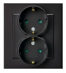 Gniazdo podwójne z uziemieniem schuko z przesłonami torów prądowych, kompletne z ramką Ospel Sonata Czarny Metalik