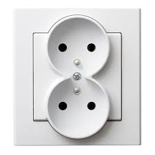 Gniazdo podwójne z uziemieniem z przesłonami torów prądowych, kompletne z ramką Ospel Sonata Biała