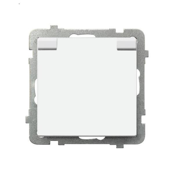 Gniazdo bryzgoszczelne z uziemieniem IP-44 z przesłonami torów prądowych wieczko w kolorze wyrobu Ospel Sonata Biała