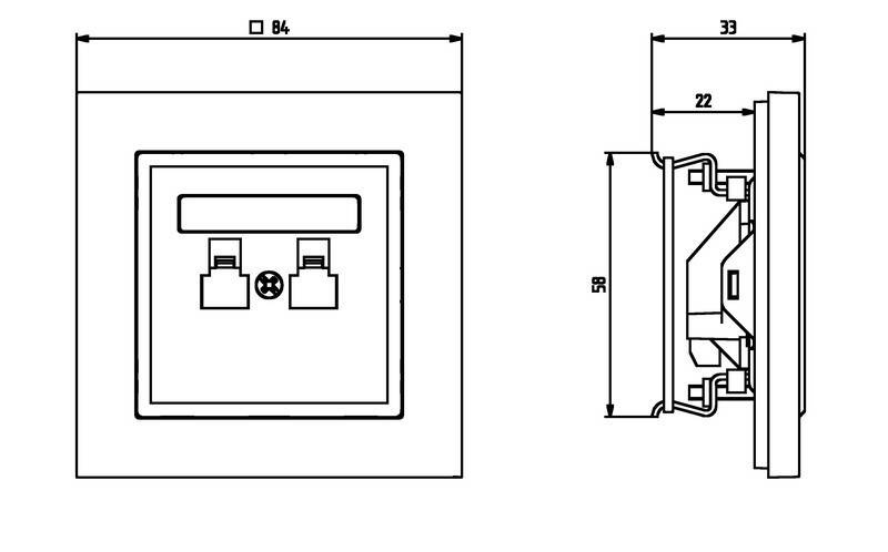 Gniazdo telefoniczne podwójne równoległe Ospel Sonata Czarny Metalik
