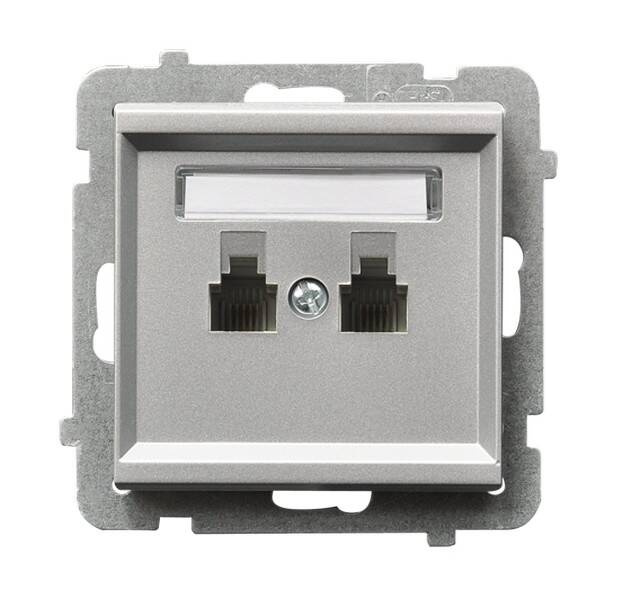 Gniazdo telefoniczne podwójne równoległe Ospel Sonata Srebrny Mat