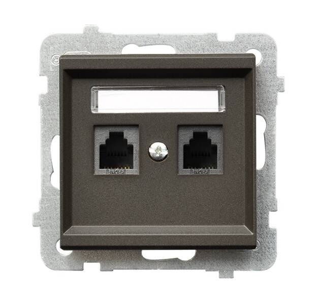 Gniazdo telefoniczne podwójne równoległe Ospel Sonata Czekoladowy Metalik